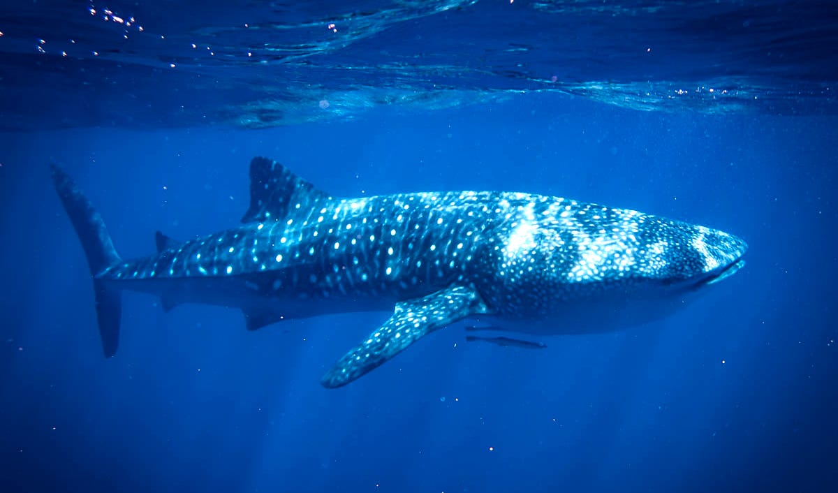 The Whale Shark (Rhincodon typus) is the largest known extant fish species. About the size of a large city bus, they are slow-moving, and unlike most sharks they are filter-feeders, not hunters. They pose no dangers to humans. But the reverse is not true, as Homo sapiens hunts the endangered whale shark for its fins, meat and liver oil.