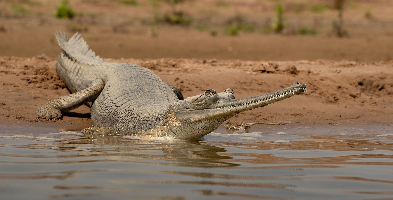 The majestic Gharial was once ubiquitous on the fluvial northern Indian subcontinent - from the Indus to the Ganges to the Irrawaddy. By the 1970s, however, human activity had reduced these long-snouted crocodilians to 2% of their former range. Fewer than 800 individuals remain.