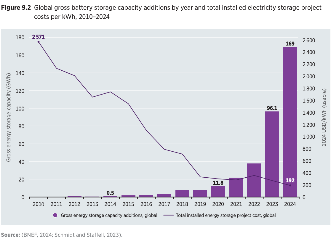Assisting in the next phase of the solar energy revolution will be the plummeting cost of energy storage. Battery prices have fallen by 93% since 2010, and will continue to fall further as Chinese manufacturers scale the less expensive lithium-iron-phosphate (LFP) technology and introduce potentially even lower-cost chemistries like sodium-ion.