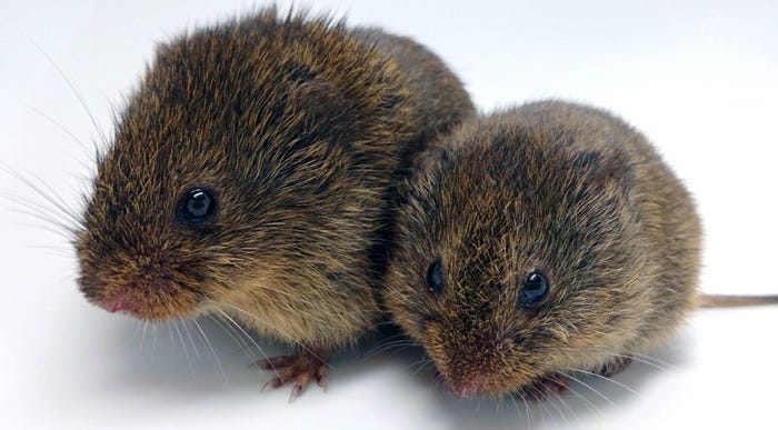 Prairie voles are famous for their role in unlocking the chemical secrets of monogamous behavior. While they pair up for life and both parents care for offspring, their close genetic cousins the Montane Voles (M. montanus) are entirely promiscuous. By studying the small genetic differences between the two species, scientists uncovered oxytocin and vasopressin - two neurochemicals also found in humans that promote pair-bonding.