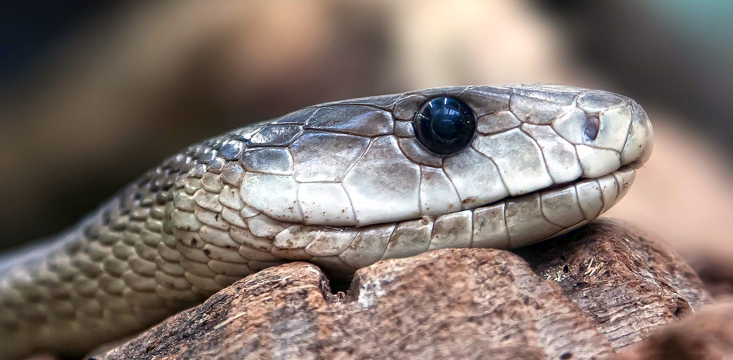 The Black Mamba is a highly venomous snake. Exceeding 2 m (6 ft 7 in) in length, it is the second-longest such snake after the famed King Cobra (Ophiophagus hannah). The Black Mamba is both terrestrial and arboreal, and feeds on small mammals like rodents and birds. Bites to humans can be fatal within hours unless the appropriate antivenom is administered.