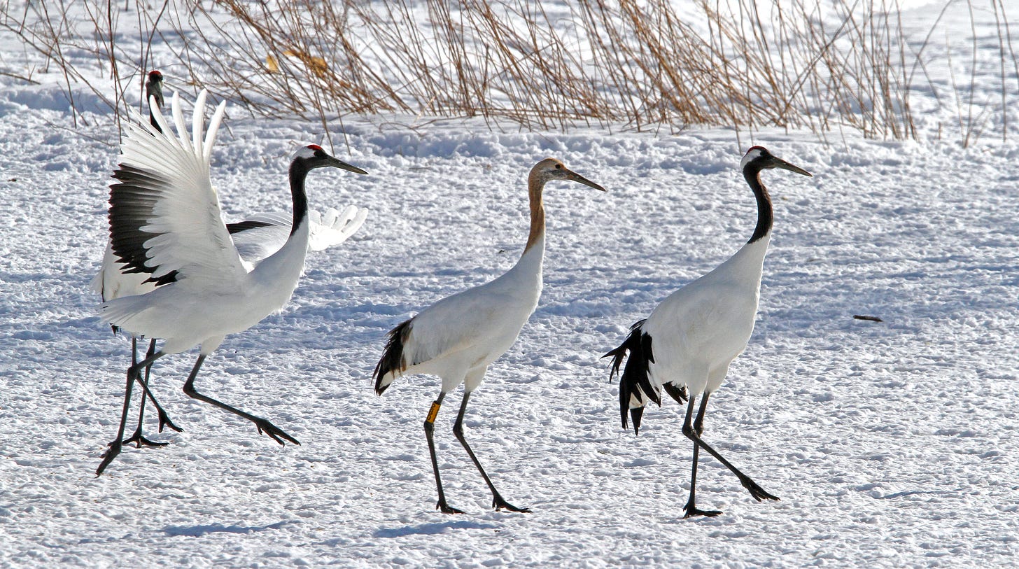 There are an estimated 4,600 Red-Crowned Cranes remaining in the wild, but their conservation fortunes vary dramatically by geography. In Japan and Korea, the cranes have been protected for decades and populations are increasing. In China, the destruction of wetland habitat continues apace and populations are careening to extinction.